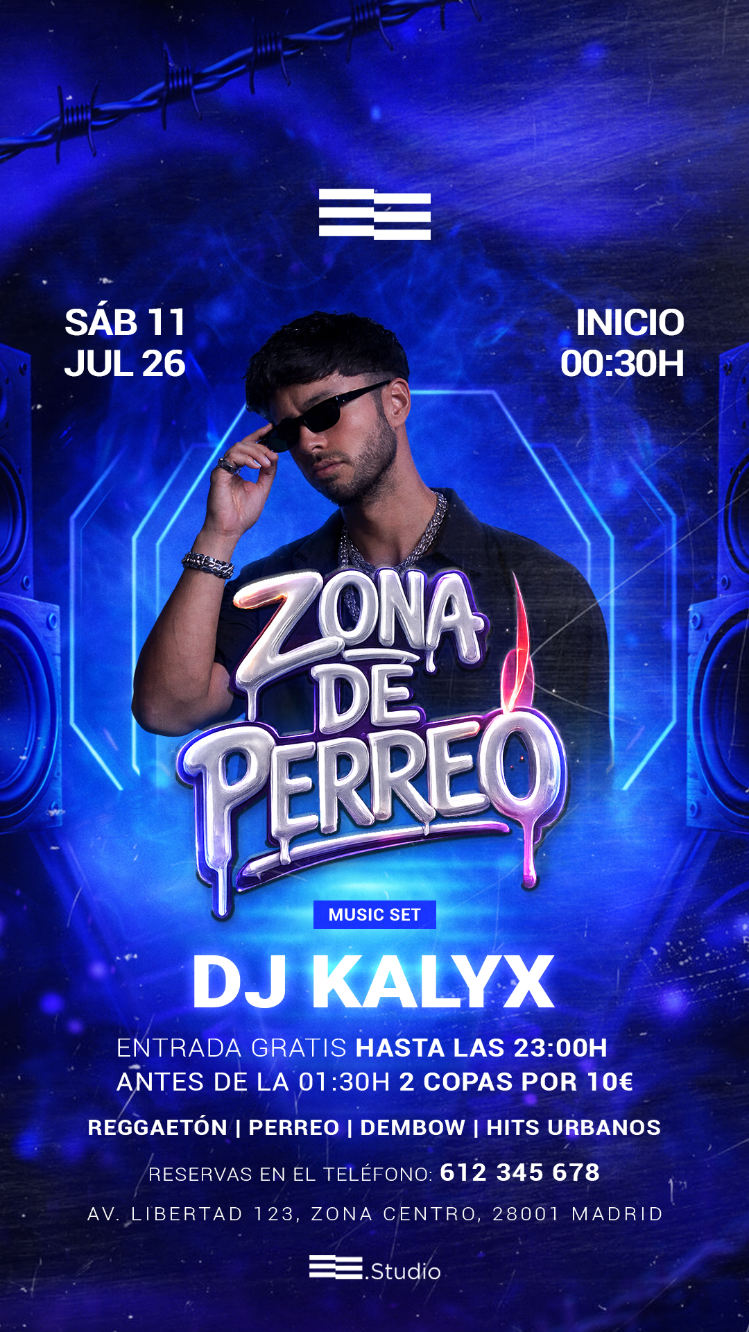 Perfecta para clubs, promotores, DJs y eventos nocturnos que buscan una imagen moderna y profesional.